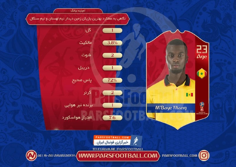 اینفوگرافی ام بایه نیانگ، بهترین بازیکن دیدار لهستان و سنگال در بازی های جام جهانی