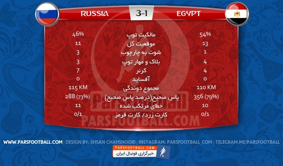 اینفوگرافی آمار پایان بازی تیم های روسیه و مصر
