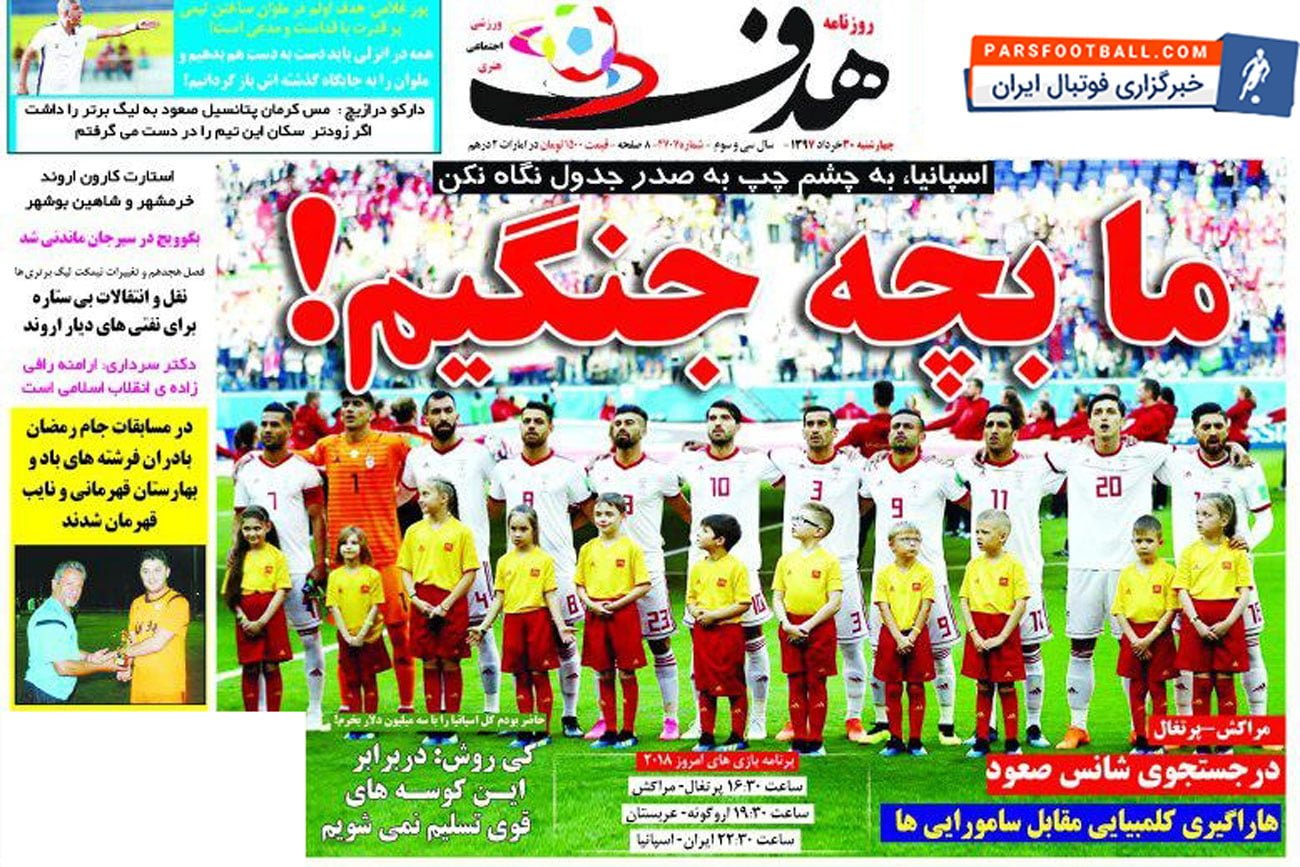 روزنامه هدف ورزشی ، چهارشنبه ۳۰ خرداد ؛ ما بچه جنگیم !
