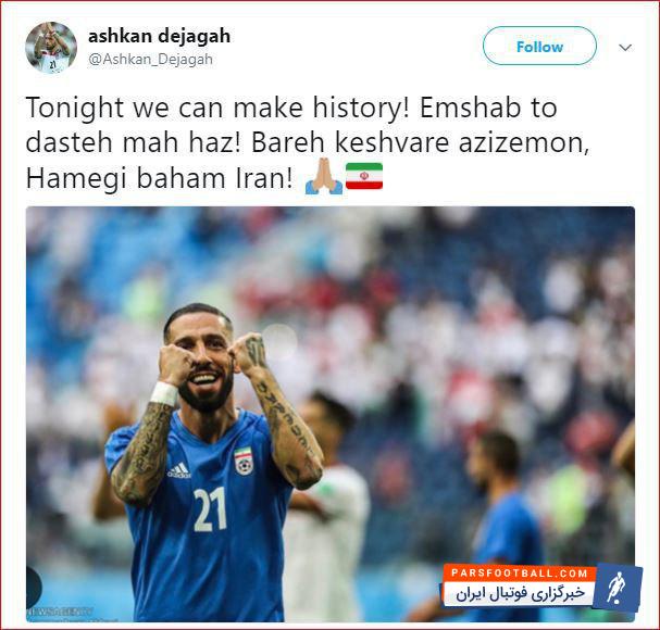 اشکان دژاگه : امشب همه چیز در دستان ما است تا برای کشور عزیزمان افتخارآفرینی کنیم