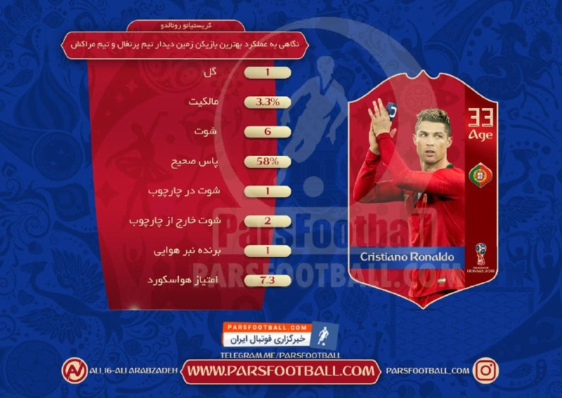 اینفوگرافی رونالدو بهترین بازیکن دیدار تیم های پرتغال و مراکش