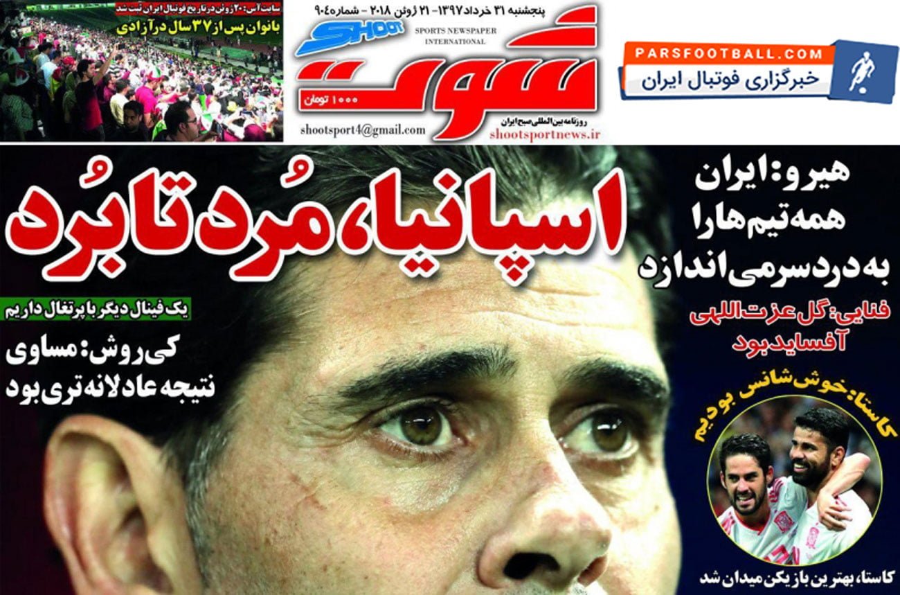 روزنامه شوت ، پنجشنبه ۳۱ خرداد ؛ اسپانیا ، مرد تا برد !