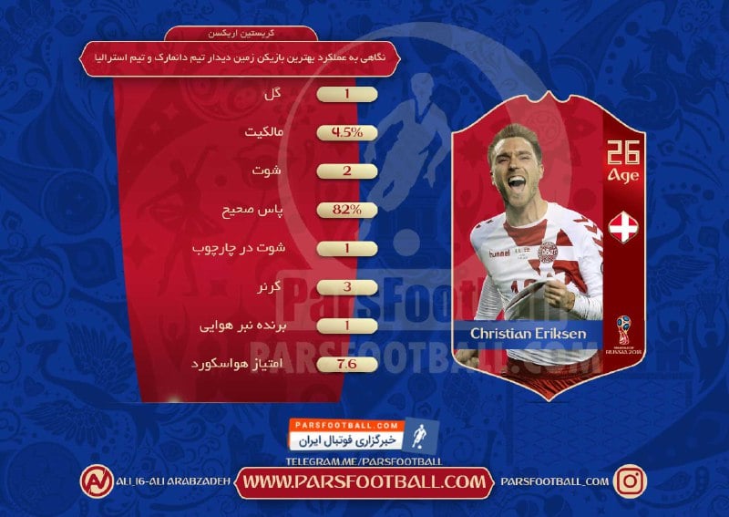 اینفوگرافی کریستین اریکسن بهتری بازیکن دیدار دانمارک و استرالیا