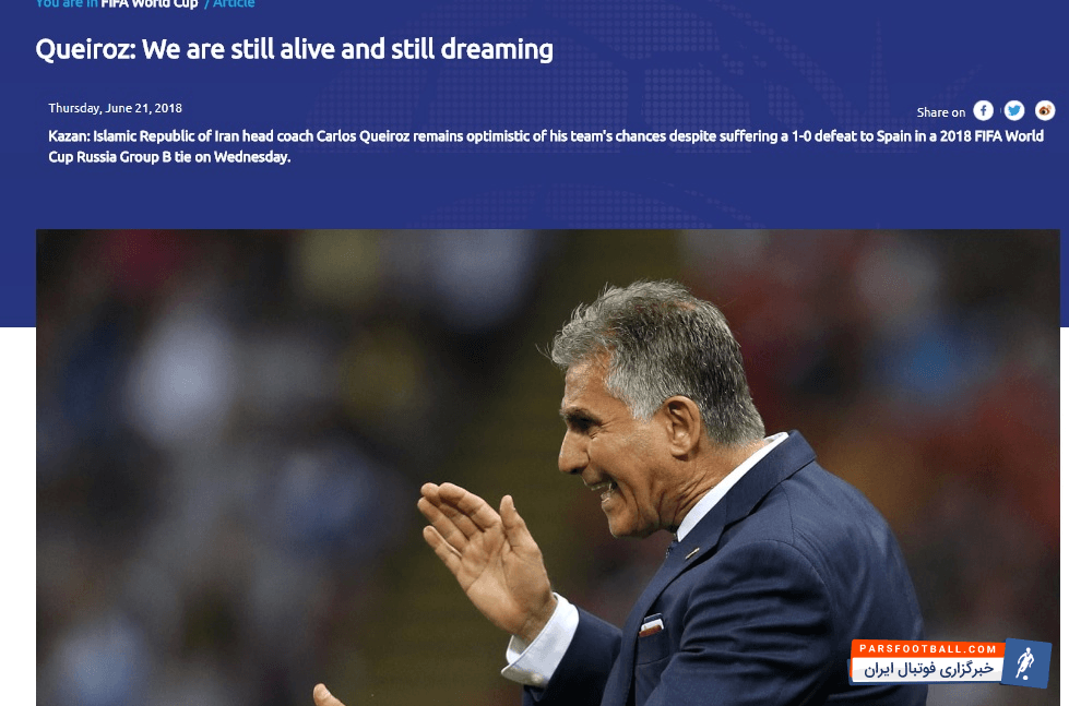 سایت کنفدراسیون فوتبال آسیا(AFC) مصاحبه کارلوس کی روش سرمربی تیم ملی ایران، بعد از بازی ایران با اسپانیا در جام جهانی ۲۰۱۸ روسیه را بازتاب داد و به نقل از کی روش تیتر زد: