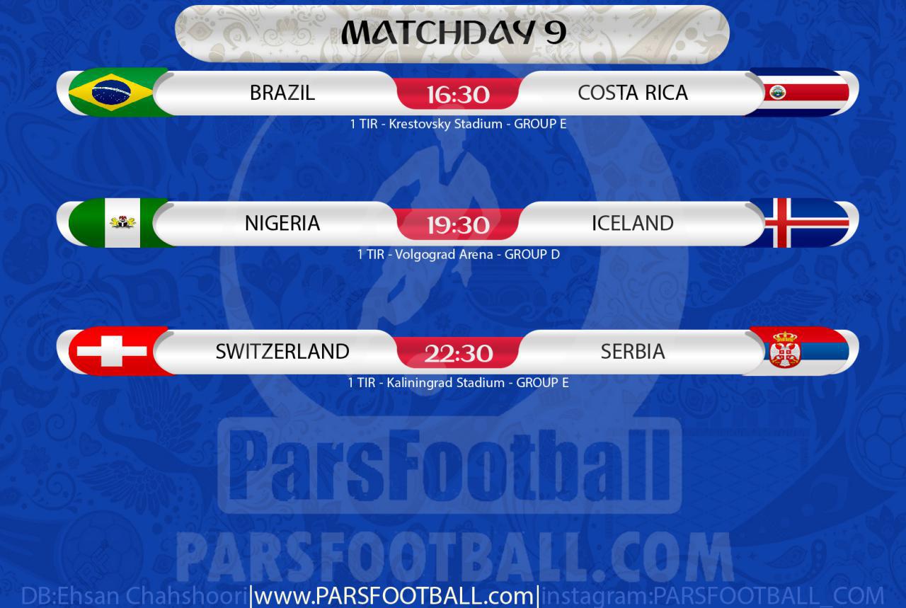 اینفوگرافی برنامه بازی های روز نهم جام جهانی 2018 روسیه