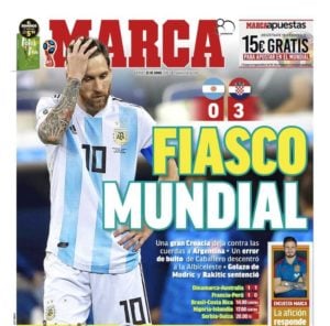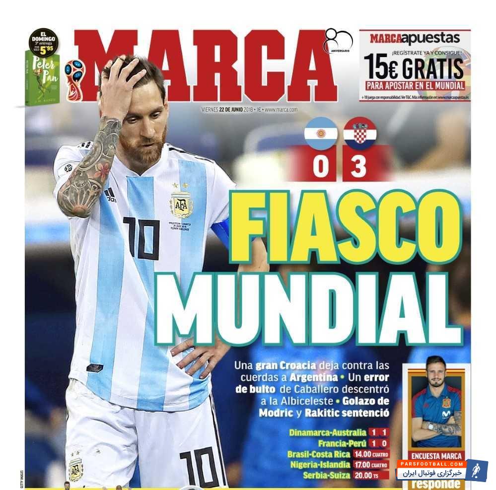 روزنامه مارکا اسپانیا ، جمعه ۲۲ ژوئن ؛ شکست مفتضحانه مسی در جام جهانی !