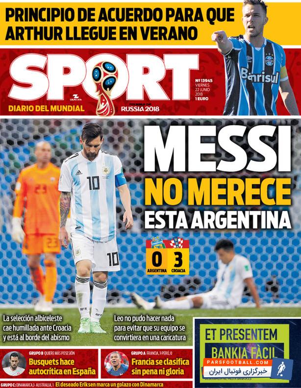 روزنامه اسپورت اسپانیا ، جمعه ۲۲ ژوئن ؛ مسی لایق این آرژانتین نیست !