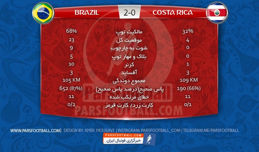 اینفوگرافی آمار پایان بازی تیم های برزیل و کاستاریکا