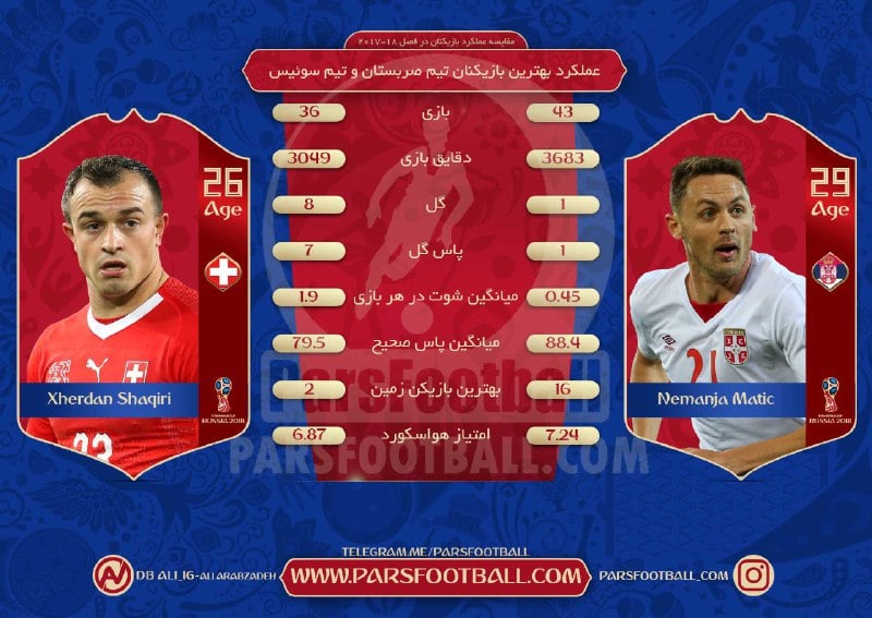 اینفوگرافی عملکرد ستاره های دیدار صربستان و سوئیس در بازی های جام جهانی