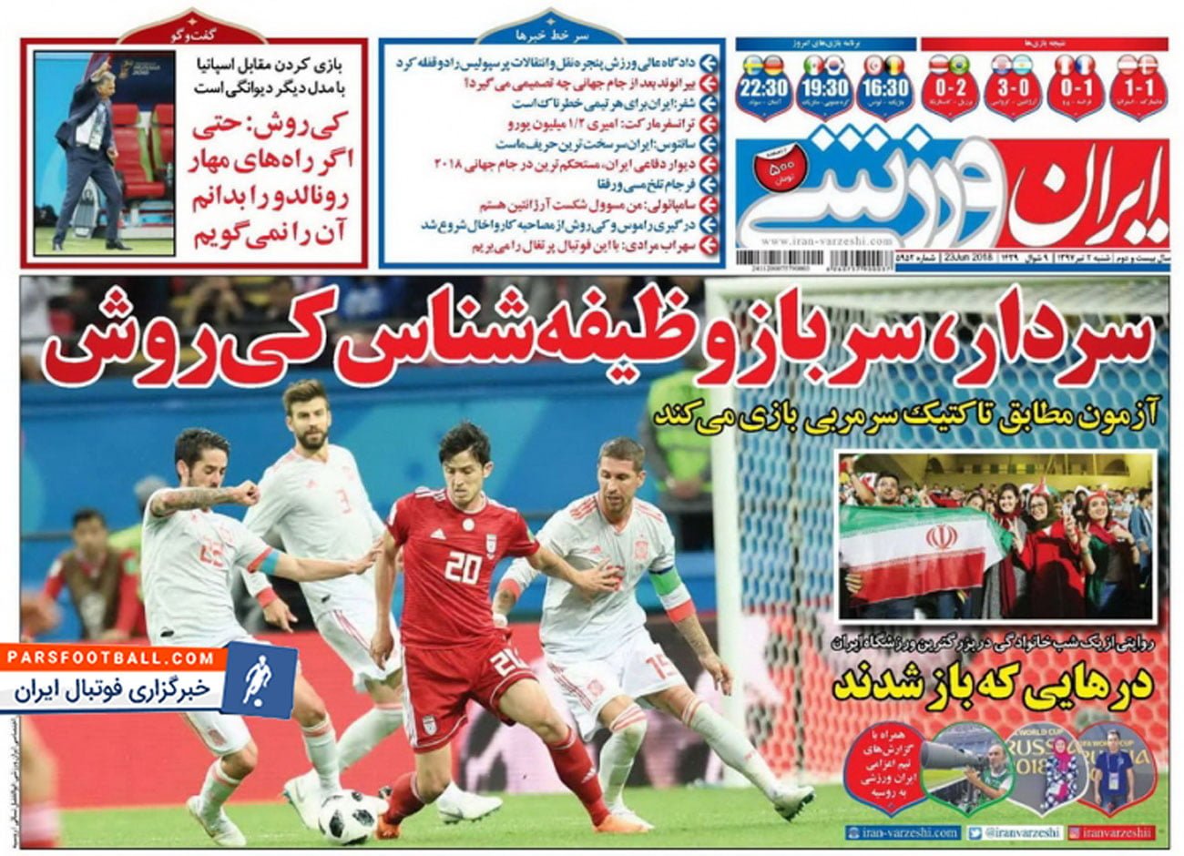 روزنامه ایران ورزشی ، شنبه ۲ تیر ؛ سردار ، سرباز وظیقه شناس کی روش !