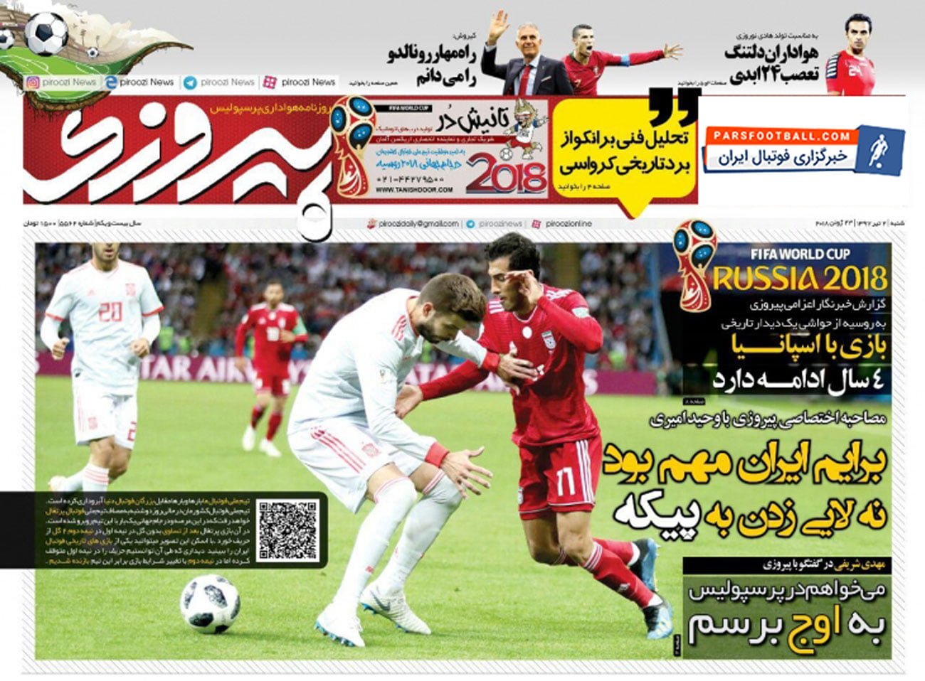 روزنامه پیروزی ، شنبه ۲ تیر ؛ می خواهم در پرسپولیس به اوج برسم !