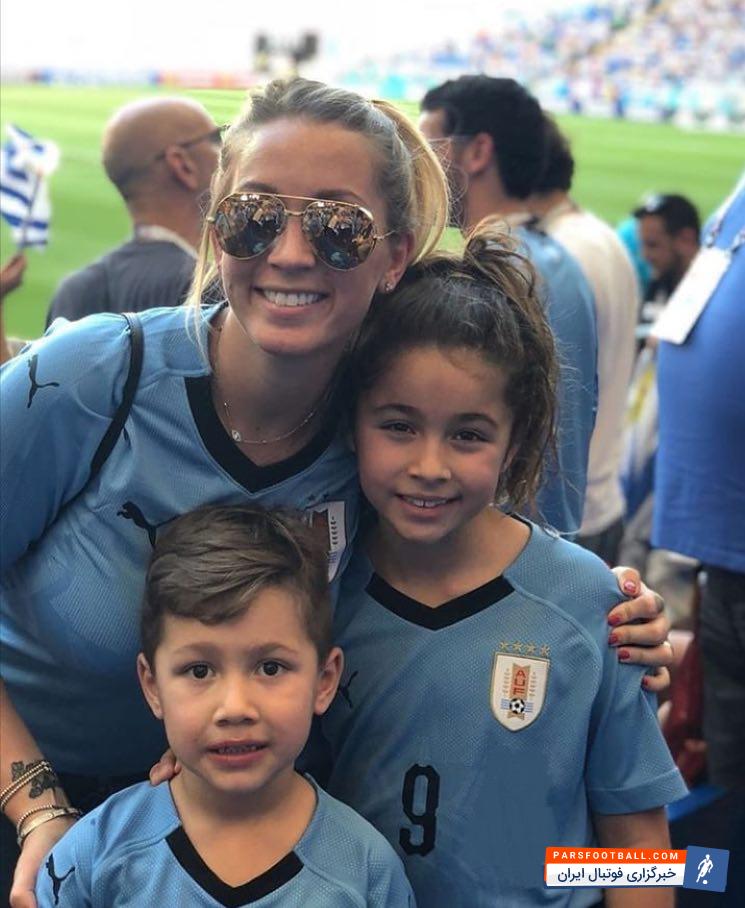 در ادامه عکسی از فرزندان و همسر او را می بینید که برای حمایت از او و تیم اروگوئه راهی روسیه شده اند.