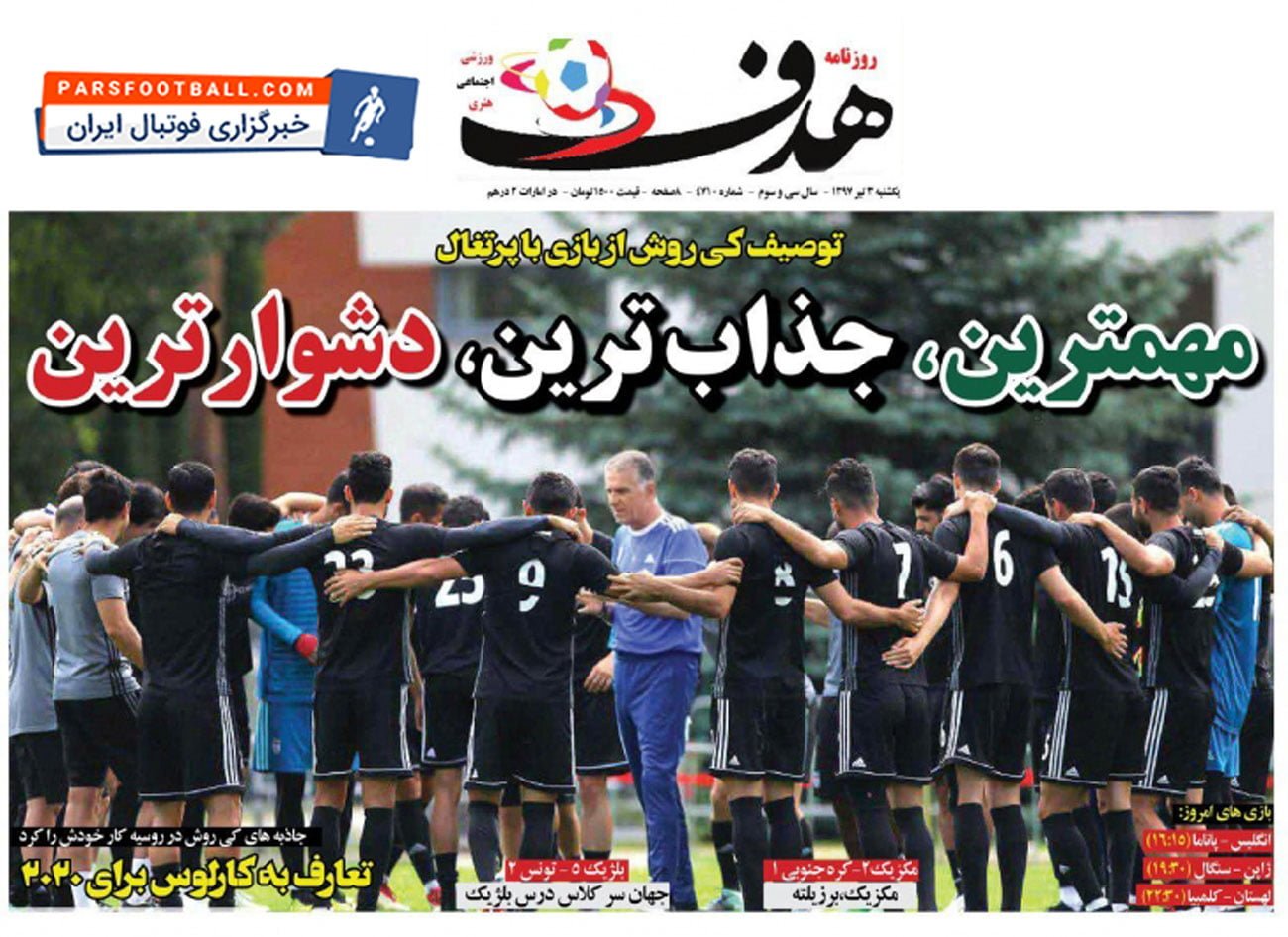 روزنامه هدف ورزشی ، یکشنبه ۳ تیر ؛ جاذبه های کی روش در روسیه کار خودش را کرد !
