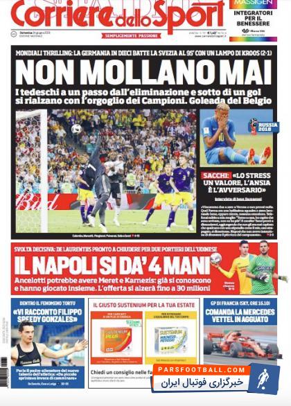 تیتر های نشریهی کوریره دلو اسپورت در روز یکشنبه ۲۴ ژوئن به این شرح است :