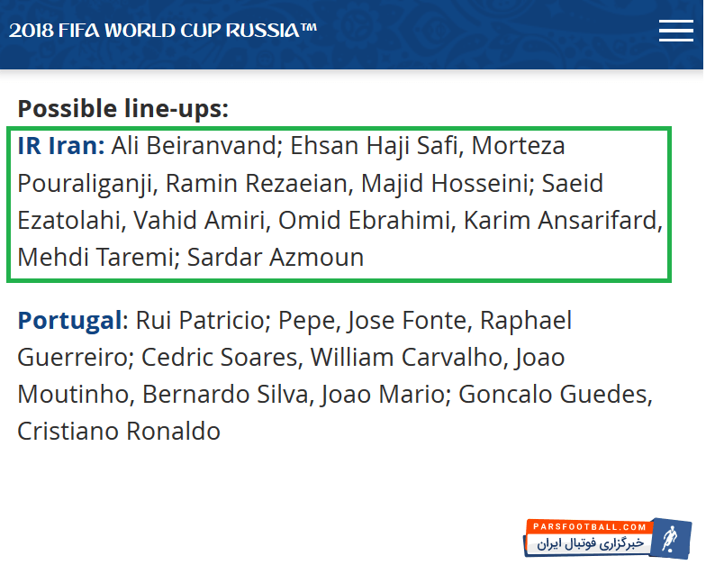 سایت رسمی فیفا ترکیب احتمالی تیمهای ایران و پرتغال را منتشر کرد.
