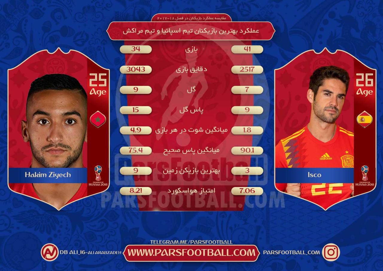 اینفوگرافی و پیش بازی تیم های اسپانیا و مراکش در بازی های جام جهانی 2018 روسیه