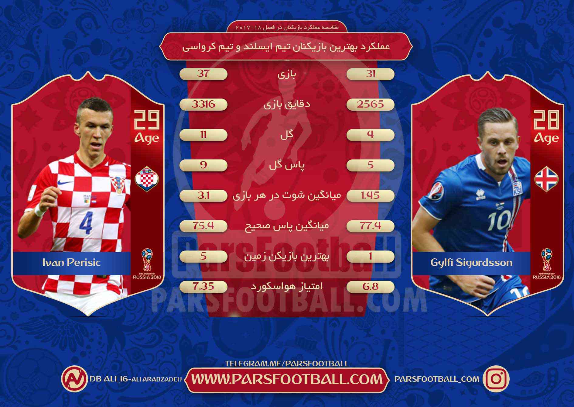 اینفوگرافی عملکرد سیگوردسون و پرشیچ ستاره های ایسلند و کرواسی در جام جهانی 2018
