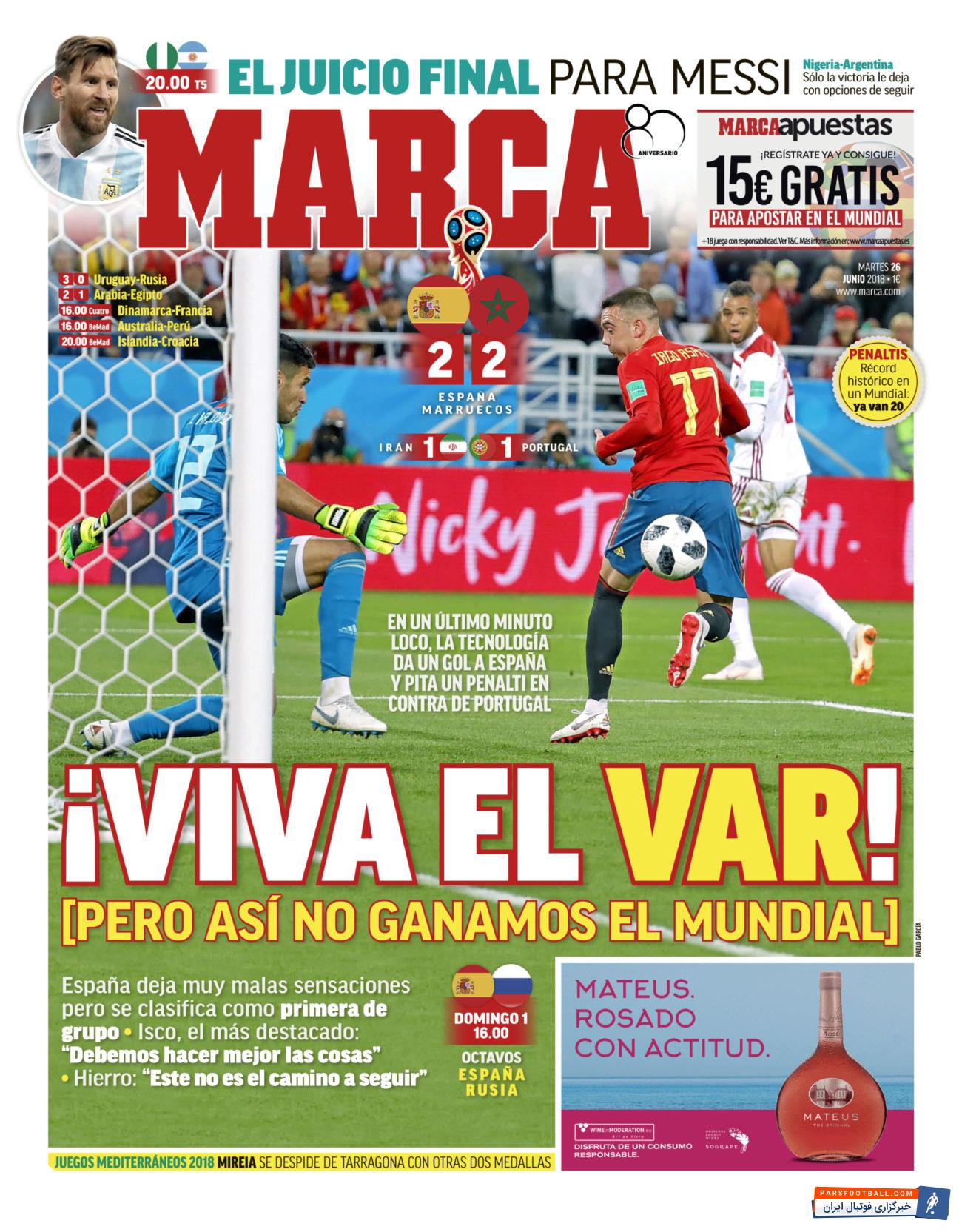 روزنامه مارکا اسپانیا ، سهشنبه ۲۶ ژوئن ؛ زنده باد VAR !