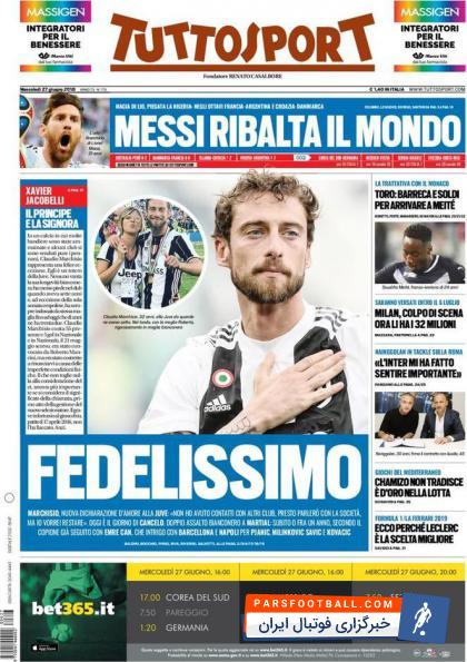 روزنامه توتو اسپورت ، چهارشنبه ۲۷ ژوئن ؛ ستاره یوونتوس ، کاملا وفادار !