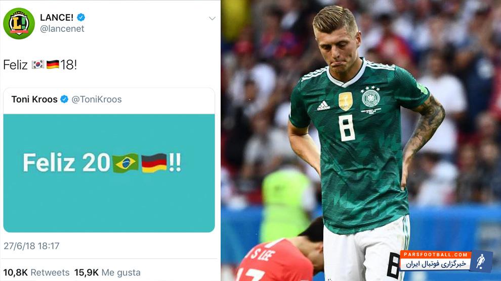 حال با حذف آلمان از رقابت ها، یکی از نشریات مشهور برزیل به نام Lance، شوخی مشابهی با تونی کروس انجام داده است.