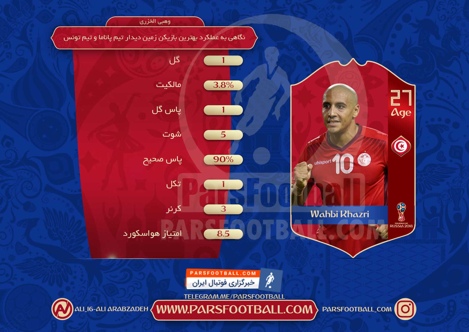 در این مطلب اینفوگرافی وهبی الخزری بهترین بازیکن دیدار تونس و پاناما در بازی های جام جهانی ۲۰۴۸ روسیه را برای شما آماده می کنیم.