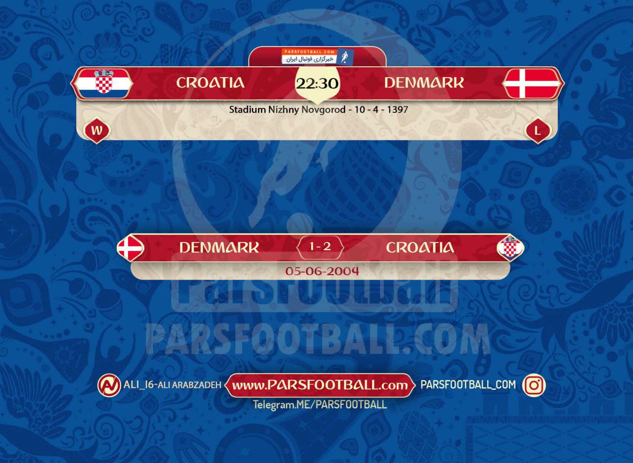 در هجدهمین روز جام جهانی، تیم های کرواسی و دانمارک برای حضور در جمع ۸ تیم برتر دنیا با هم رقابت خواهند کرد.
