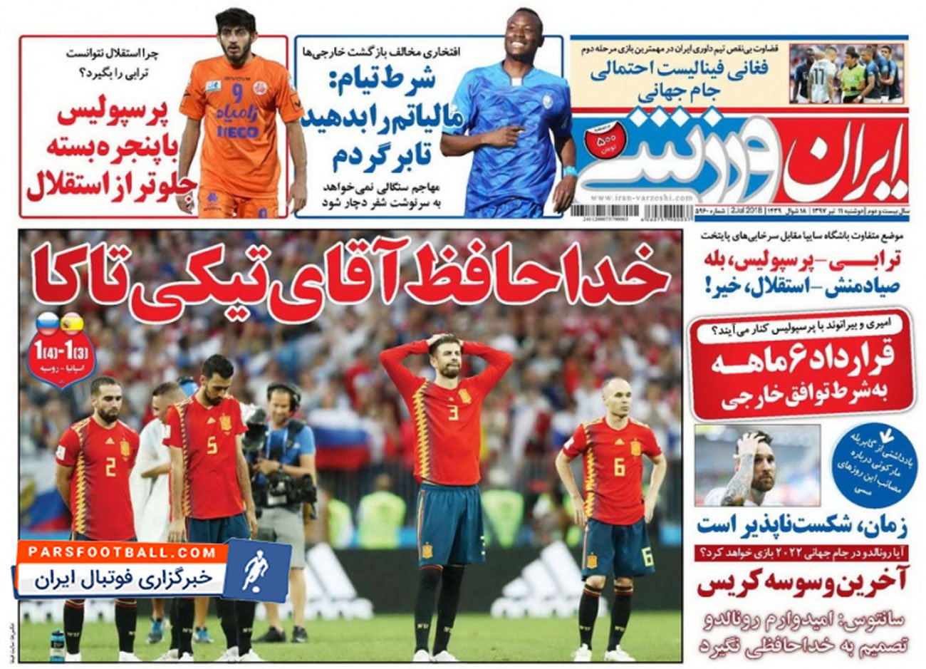 عناوین روزنامه ایران ورزشی روز دوشنبه ۱۱ تیر به شرح زیر است :