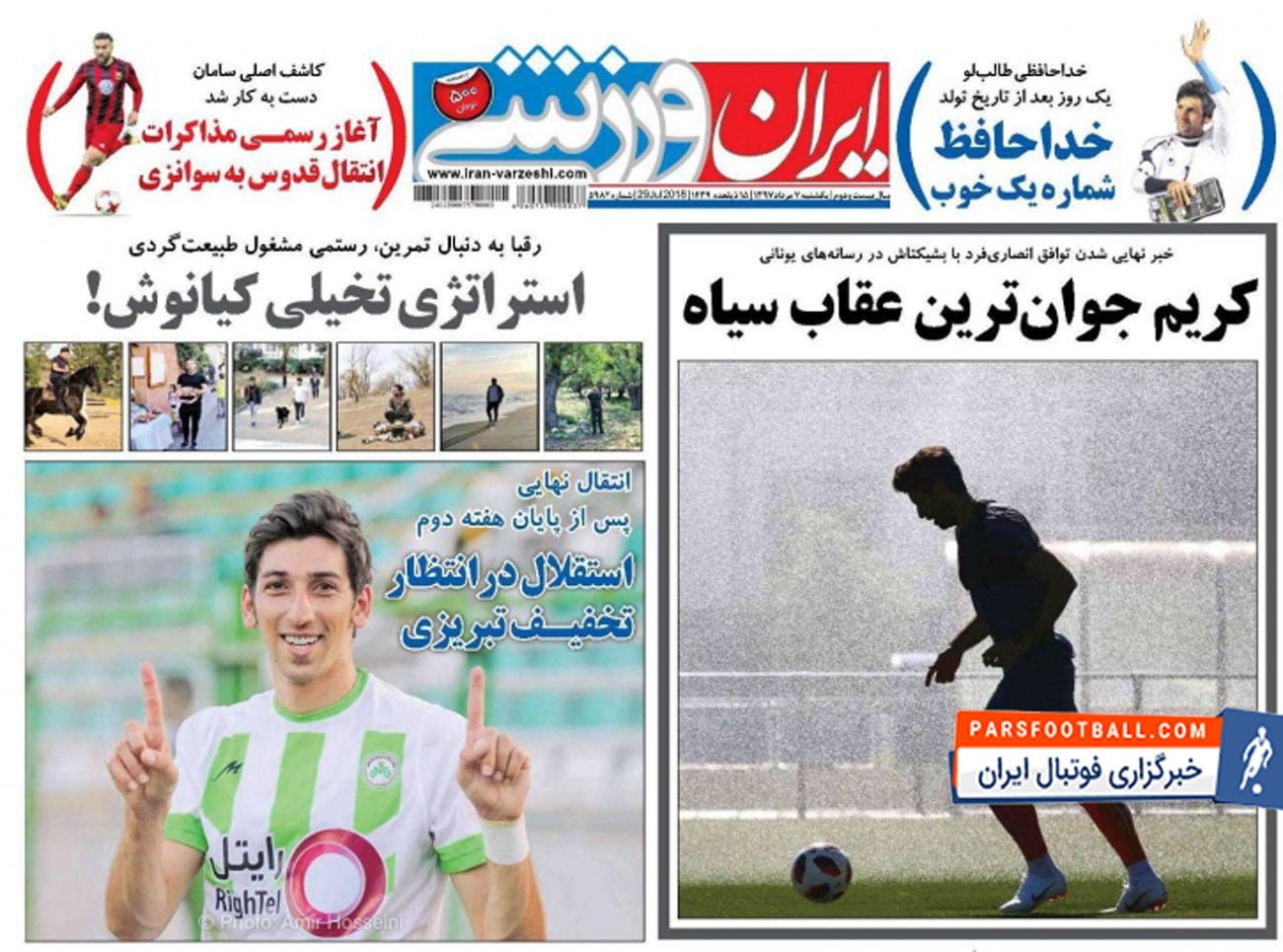 روزنامه ایران ورزشی ، یکشنبه ۷ مرداد ؛ استقلال در انتظار تخفیف تبریزی !