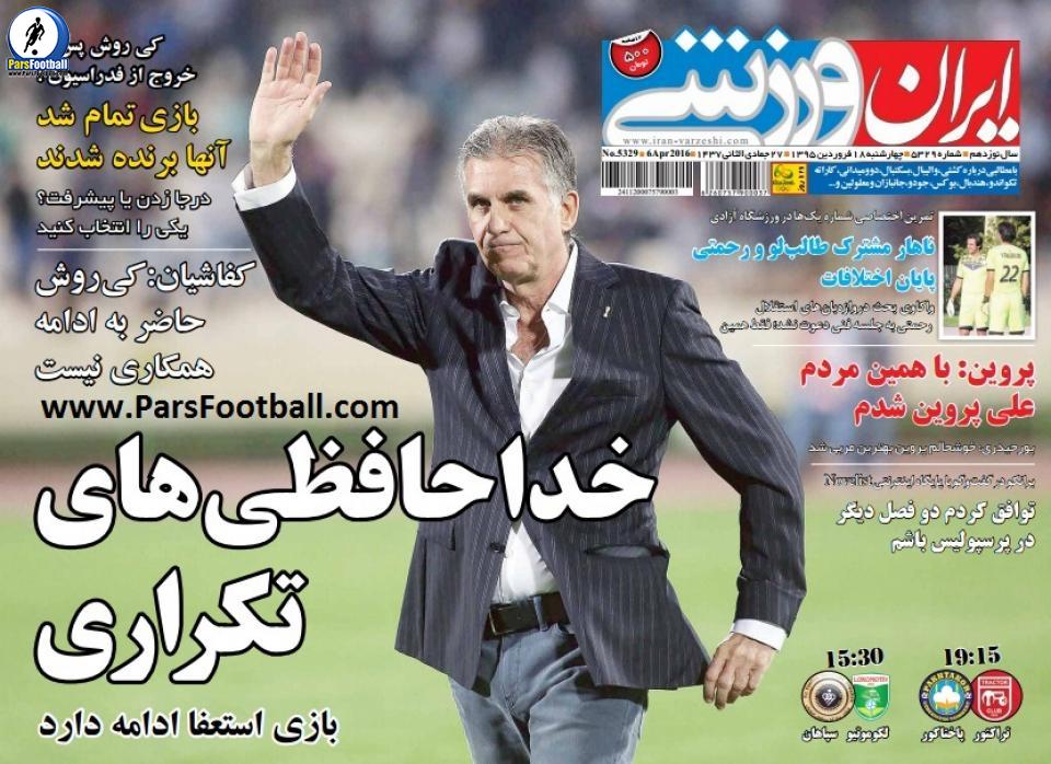 نگاهی داریم بر نیم صفحه نخست روزنامه ایران ورزشی، چهارشنبه ۱۸ فروردین.