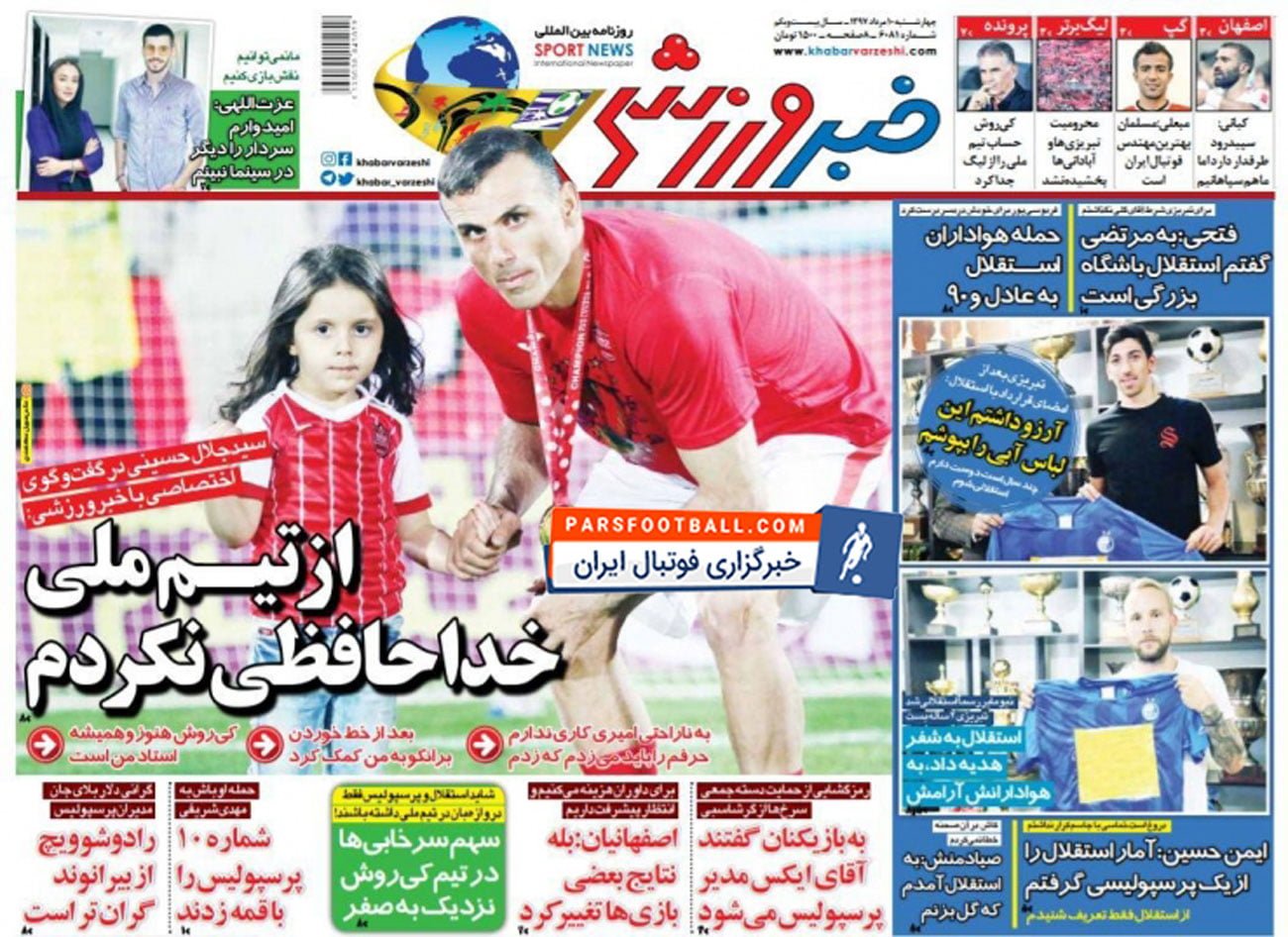 عناوین روزنامه خبر ورزشی روز چهارشنبه ۱۰ مرداد به شرح زیر است :