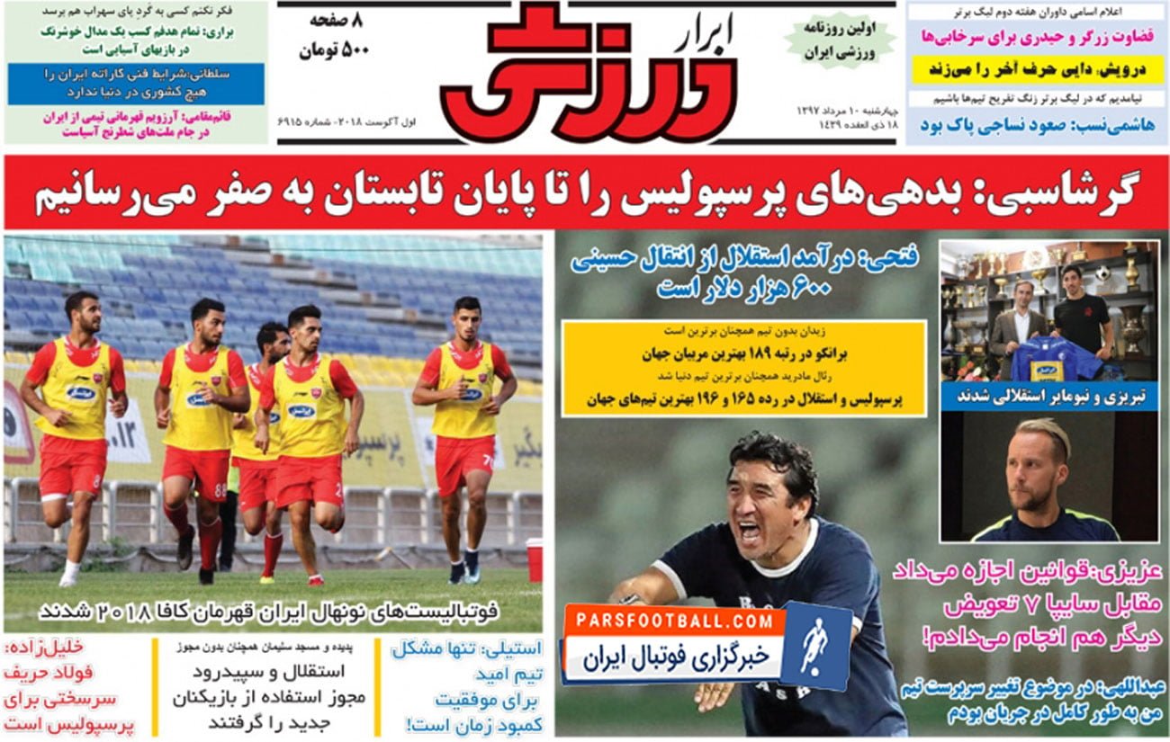 روزنامه ابرار ورزشی ، چهارشنبه ۱۰ مرداد ؛ بدهی های پرسپولیس را تا تابستان به صفر می رسانیم !