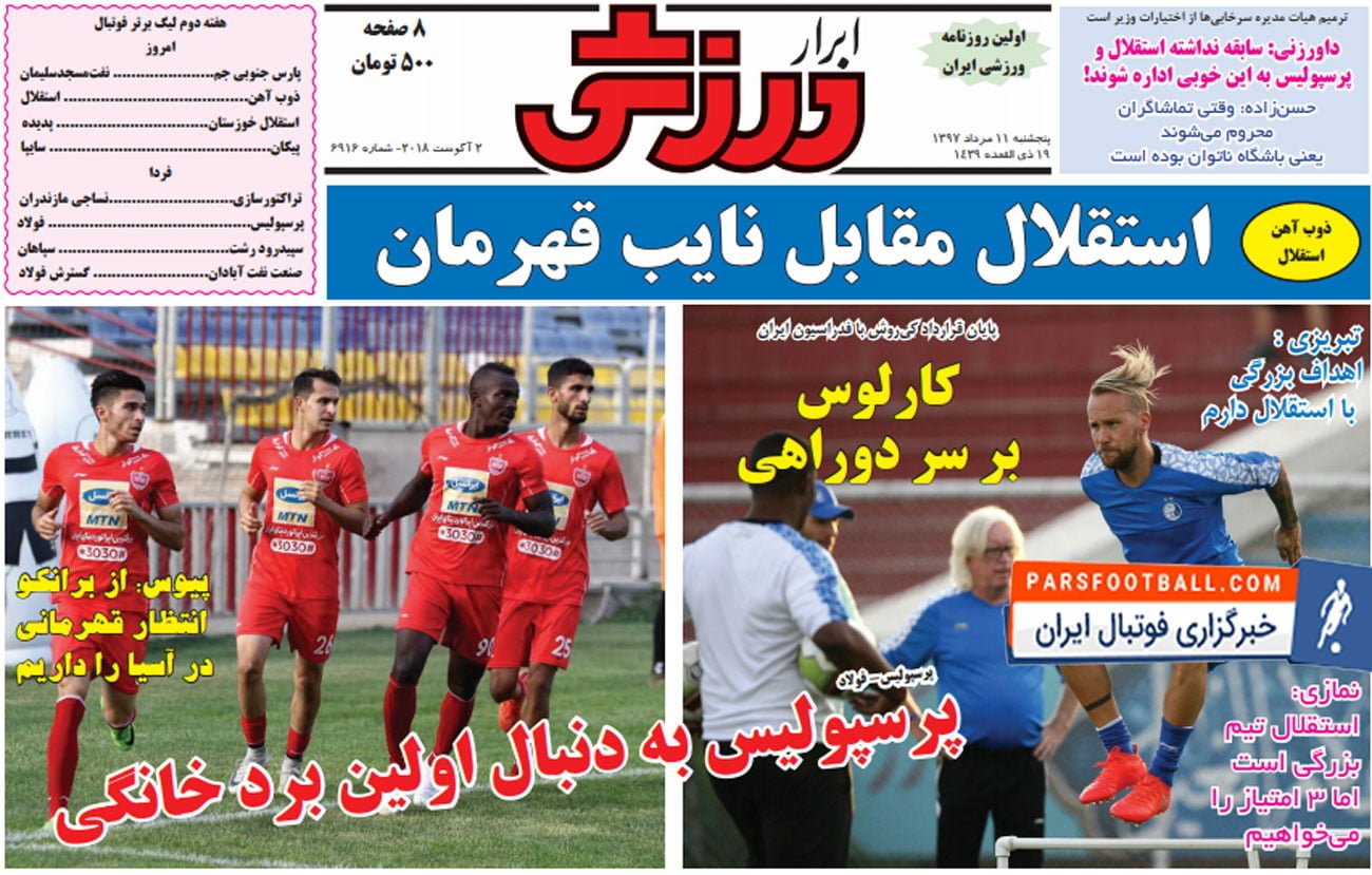 عناوین روزنامه ابرار ورزشی روز پنجشنبه ۱۱ مرداد به شرح زیر است :