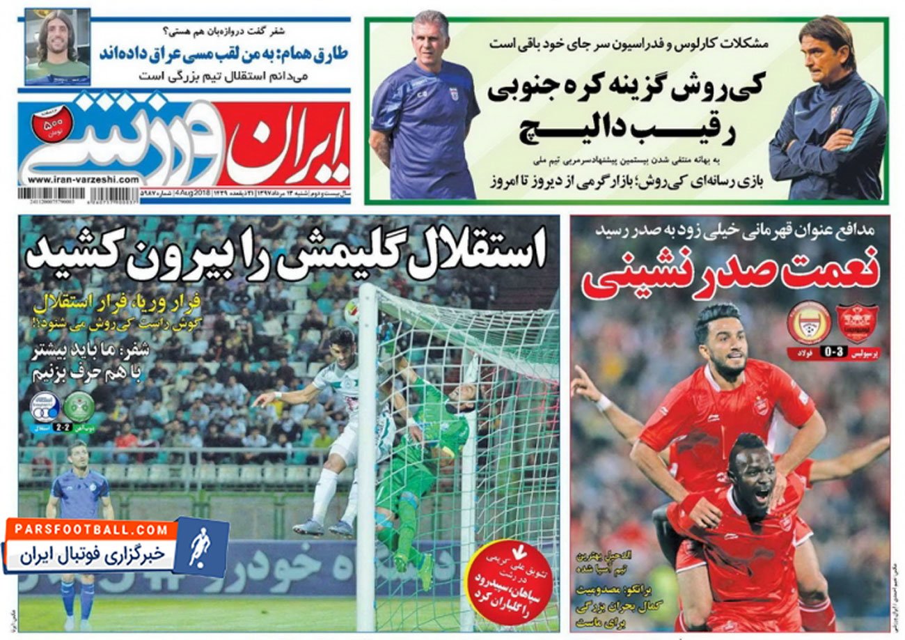 عناوین روزنامه ایران ورزشی روز شنبه ۱۳ مرداد به شرح زیر است :