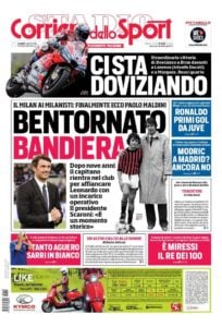 روزنامه کوریره دلو اسپورت ، دوشنبه ۶ آگوست ؛ خوش برگشتی اسطوره !