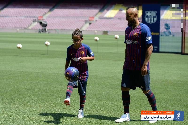 مراسم معارفه آرتورو ویدال ستاره جدید باشگاه فوتبال  بارسلونا امروز انجام شد. نکته جالب این مراسم حضور پسر ویدال با مدل مویی شبیه به پدرش بود.