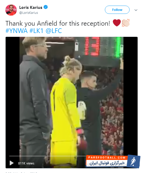 لوریس کاریوس از هواداران لیورپول بابت تشویق هایشان تشکر کرد