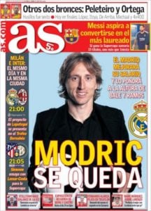 روزنامه آس اسپانیا ، شنبه ۱۱ آگوست ؛ مودریچ می ماند !