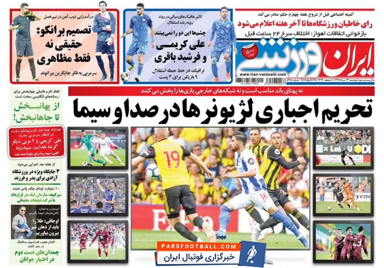 روزنامه ایران ورزشی ، دوشنبه ۲۲ مرداد ؛ تصمیم برانکو : حقیقی نه ، فقط مظاهری !