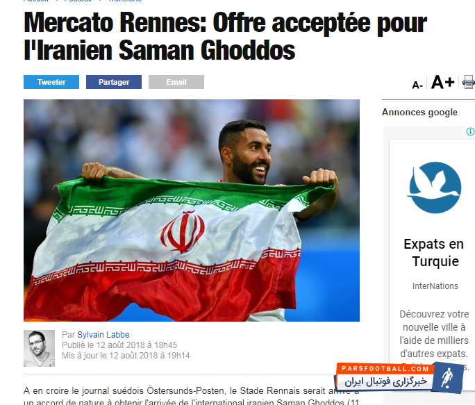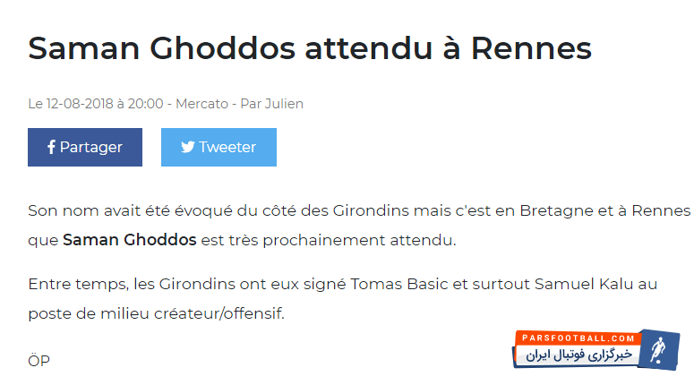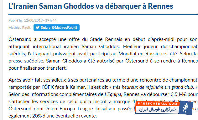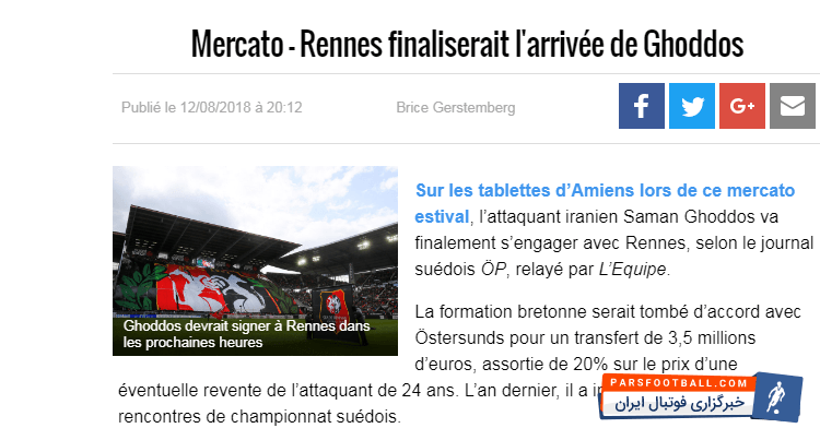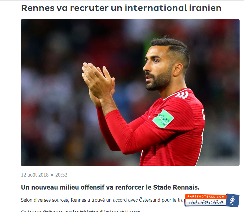 در این راستا رسانه های مختلف فرانسوی توافق نهایی ستاره ایرانی با تیم رن فرانسه را بازتاب دادند که به شکل زیر است: