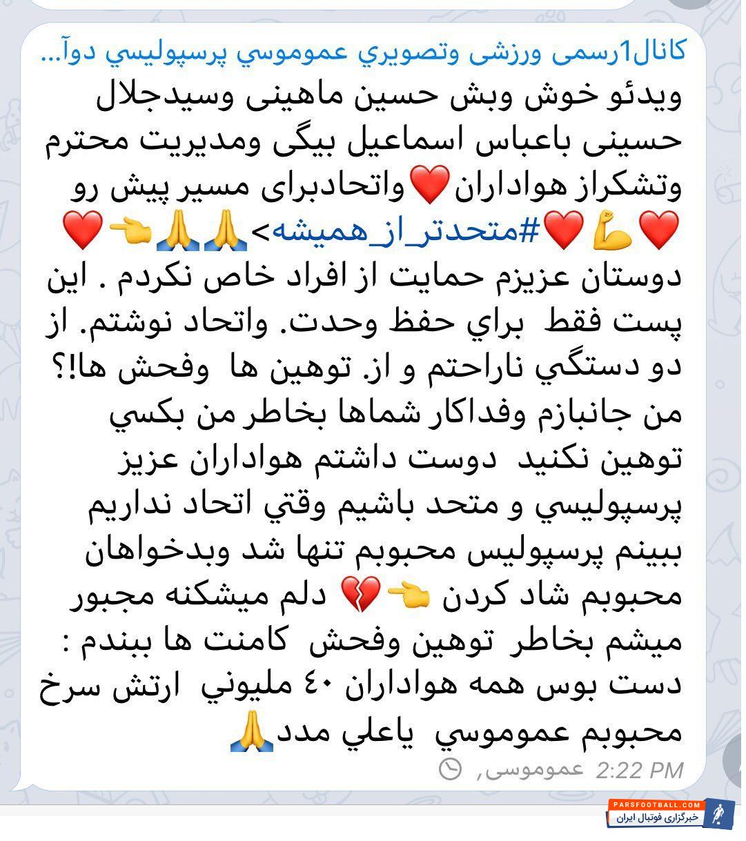 پرسپولیس - عمو موسی سلامت با انتشار پستی به حواشی ای که پس از انتشار ویدئوی خود پیش آمد واکنش نشان داد.