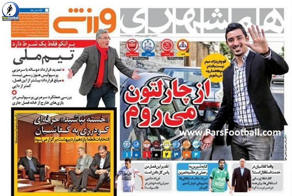 روزنامه همشهری ورزشی ۲۱ فروردین | تنها شرط برانکو | واقعاً کفاشیان در خدمت استقلال است؟