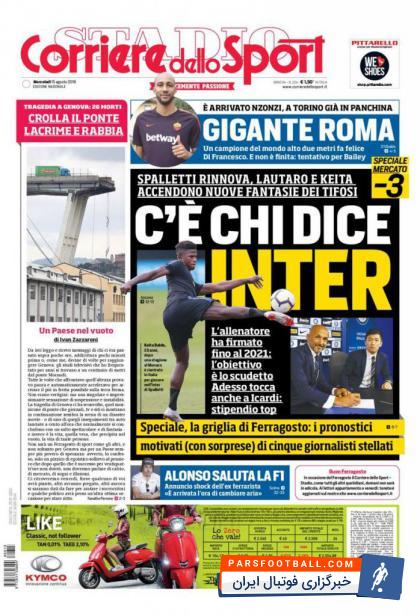 نشریه‌ی کوریره دلو اسپورت در روز چهارشنبه ۱۵ آگوست به این شرح است :