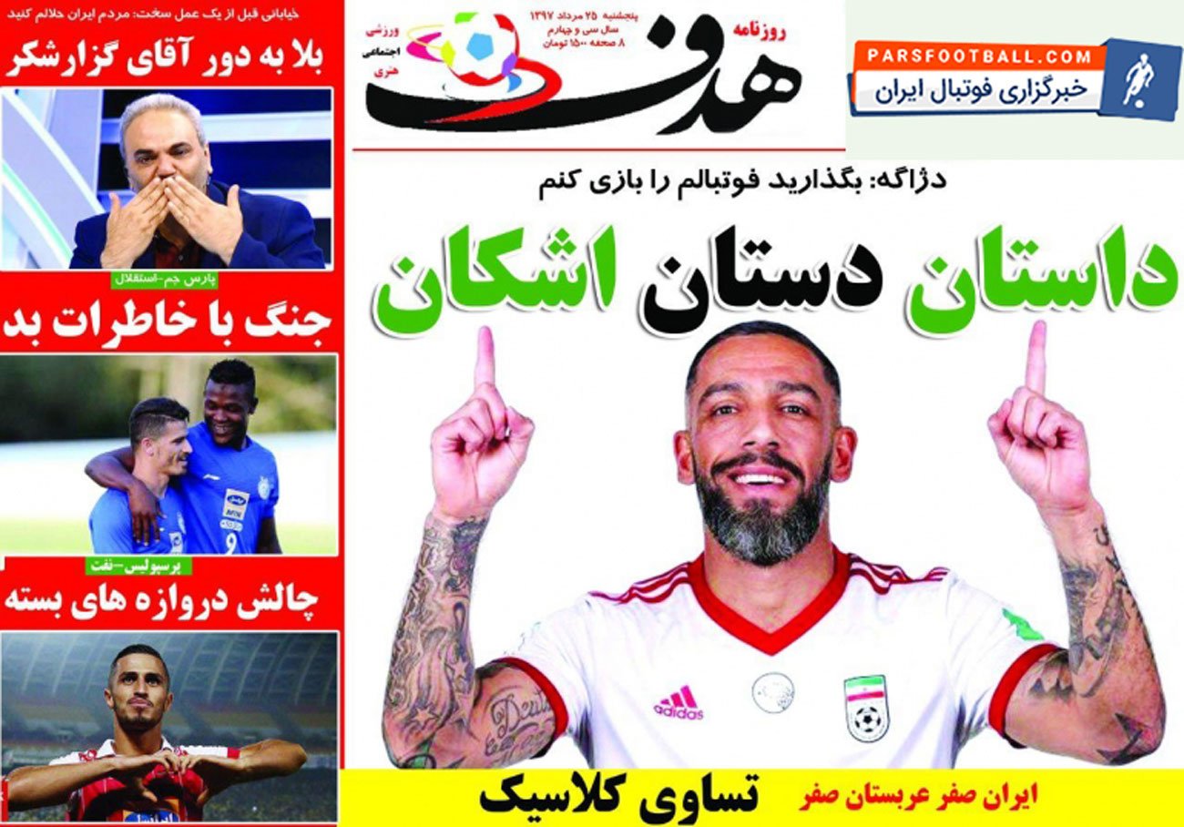 روزنامه هدف ورزشی ، پنجشنبه ۲۵ مرداد ؛ داستان دستان اشکان !
