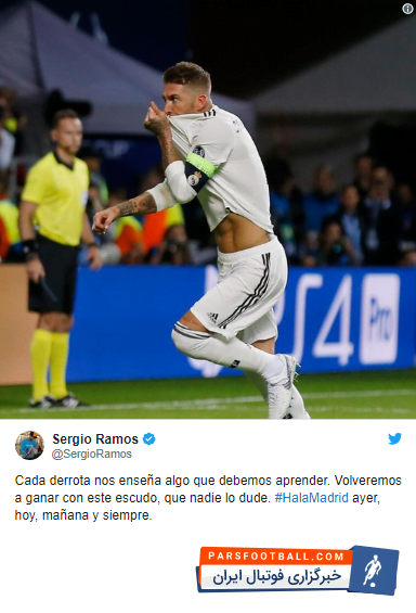 “ما از هر شکست چیزی یاد می گیریم و شکی وجود ندارد دوباره باعث پیروز شدن این نشان خواهیم شد. زنده باد مادرید دیروز، امروز، فردا و همیشه.”