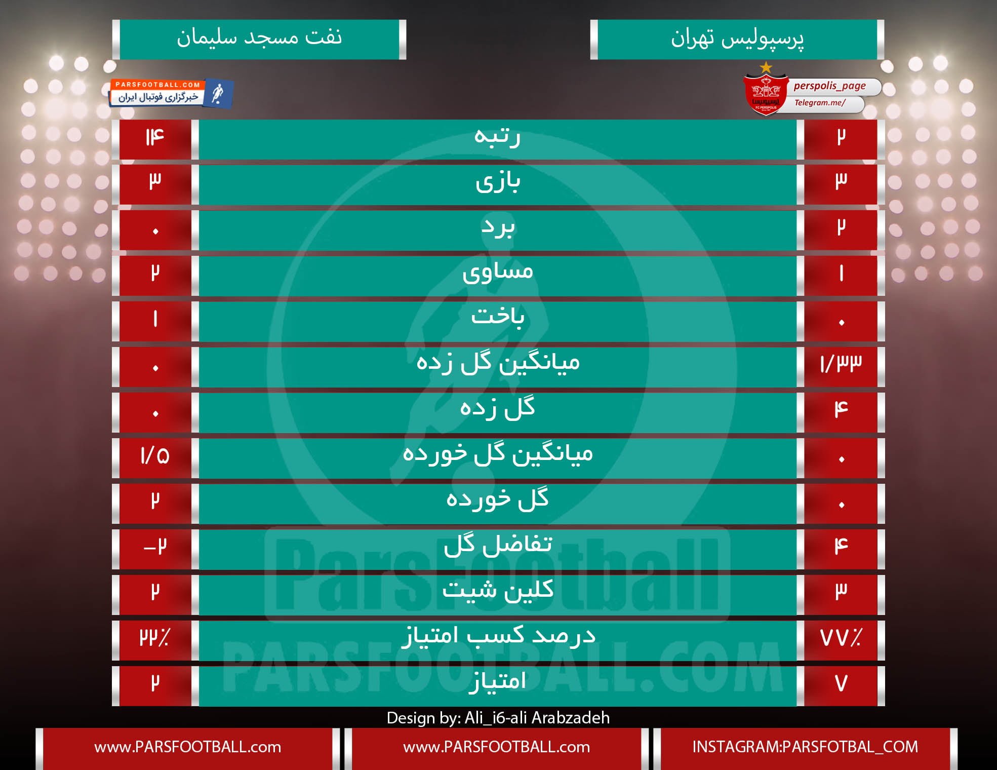 اینفوگرافی آمار عملکرد دو تیم پرسپولیس و نفت مسجد سلیمان در لیگ برتر