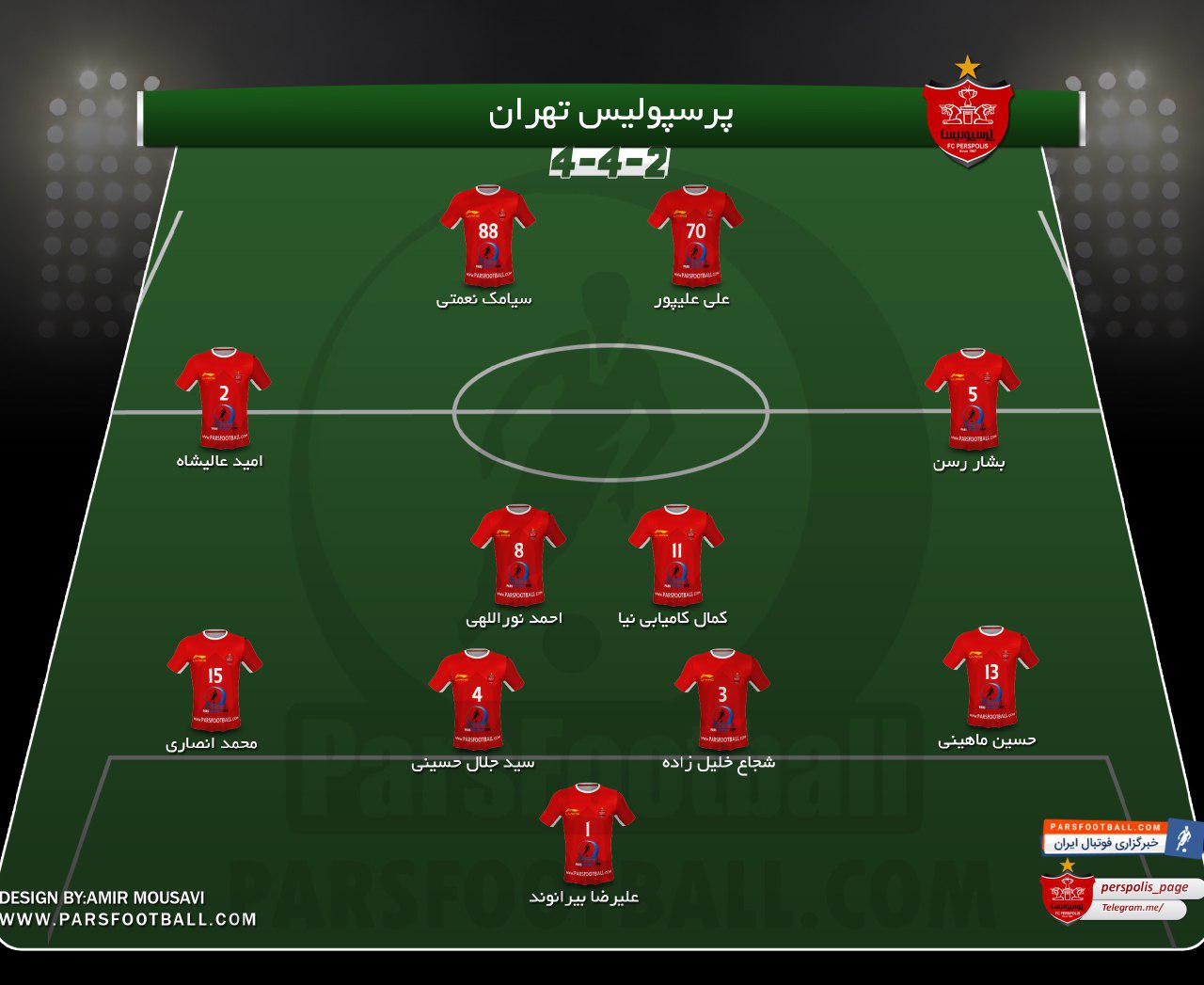 اینفوگرافی ترکیب تیم فوتبال پرسپولیس برای دیدار با نفت مسجد سلیمان