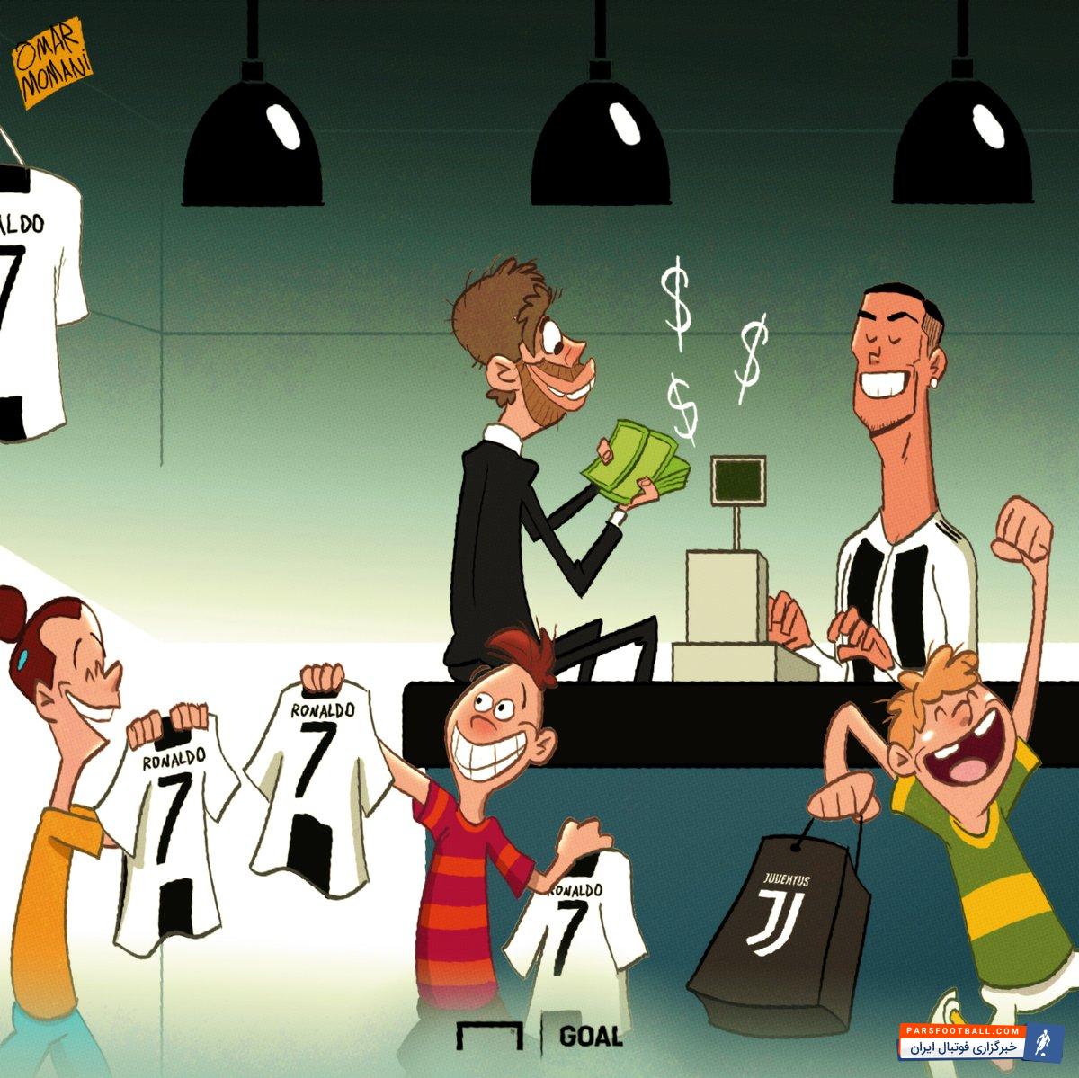 عکس؛ کاریکاتور؛ سود بسیار یوونتوس از فروش پیراهن رونالدو ؛ هر دقیقه و فروش یک پیراهن!