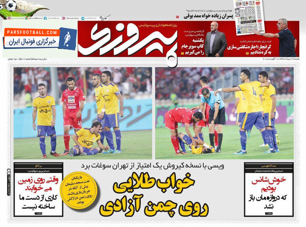 روزنامه پیروزی ، شنبه ۲۷ مرداد ؛ خواب طلایی روی چمن آزادی !