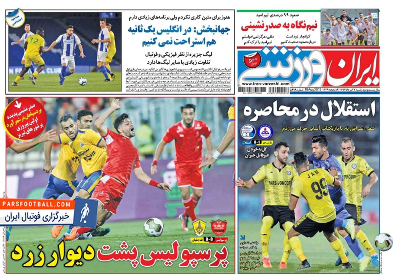 عناوین روزنامه ایران ورزشی روز شنبه ۲۷ مرداد به شرح زیر است :