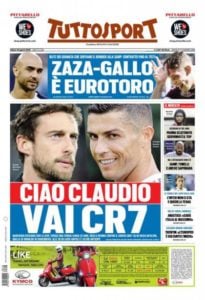 روزنامه توتو اسپورت ، شنبه ۱۸ آگوست ؛ خداحافظ کلودیو ؛ پیش برو کریستیانو !